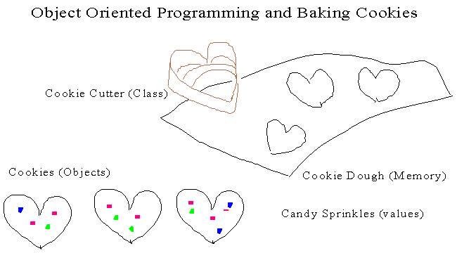 Using a Class to Make Many ObjectsA class is like a cookie cutter that can be used many times to make many cookies. Cookies are objects and each one has its own individuality because each one is made out of a different section of dough. Different cookies may have different characteristics, even though they were all made with the same cookie cutter.