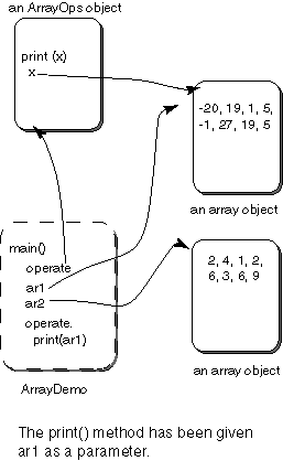 Here is a picture that shows what the executing program looks like just after the first call to the print method. Several points: