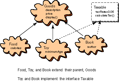 Here is a picture that shows the classes and the interface. The children classes extend their parent. This is shown with a solid arrow pointing at the parent.