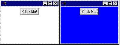 Here is the output of the program. The original frame is on the left. On the right is the frame after the button has been clicked. Clicking on the frame's "close window" button closes the frame.