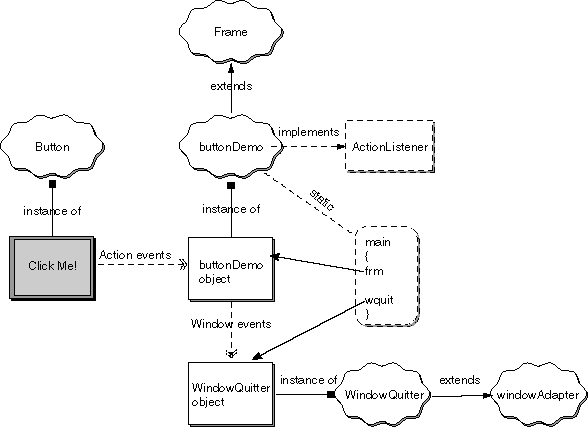 - The buttonDemo object was registered as a listener for Action Events.